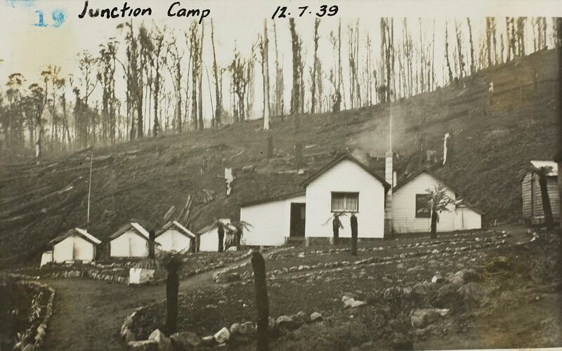 Handwritten in black ink on photograph: 'Junction Camp 12.7.39' Rubber stamped in blue ink on photograph: '19'