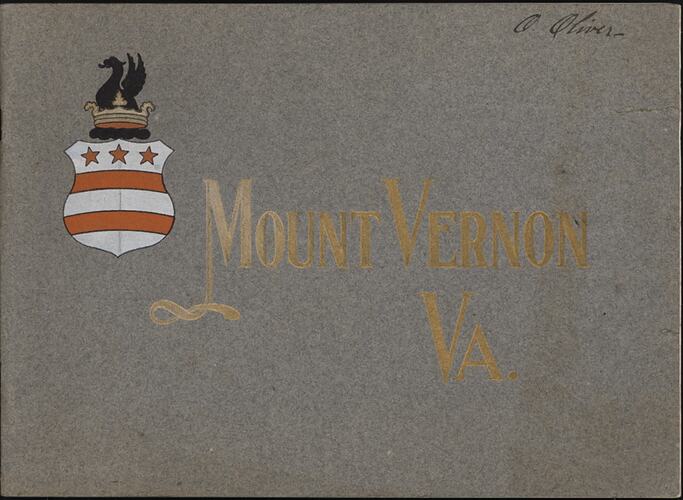 'Mount Vernon, Va.' is a booklet issued by the Mount Vernon Ladies' Association in Virginia, U.S.A. in 1910. It provides information and photographs of Mount Vernon, the home of George Washington, the first President of the U.S.A.
