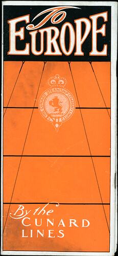 'To Europe by the Cunard Lines', issued by The Cunard Steamship Company Limited in New York, U.S.A. in 1911, provides travel information about the ships travelling different routes from the U.S.A. to Britain and Europe.