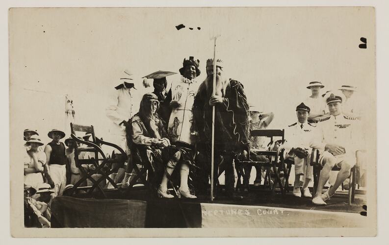 Seamen dressed as members of Neptune's Court. One of 32 black and white photographs, some in the form of postcards, relating to the military service of David Ralph Goodwin, Ex H.M.A.S. Association (Vic).