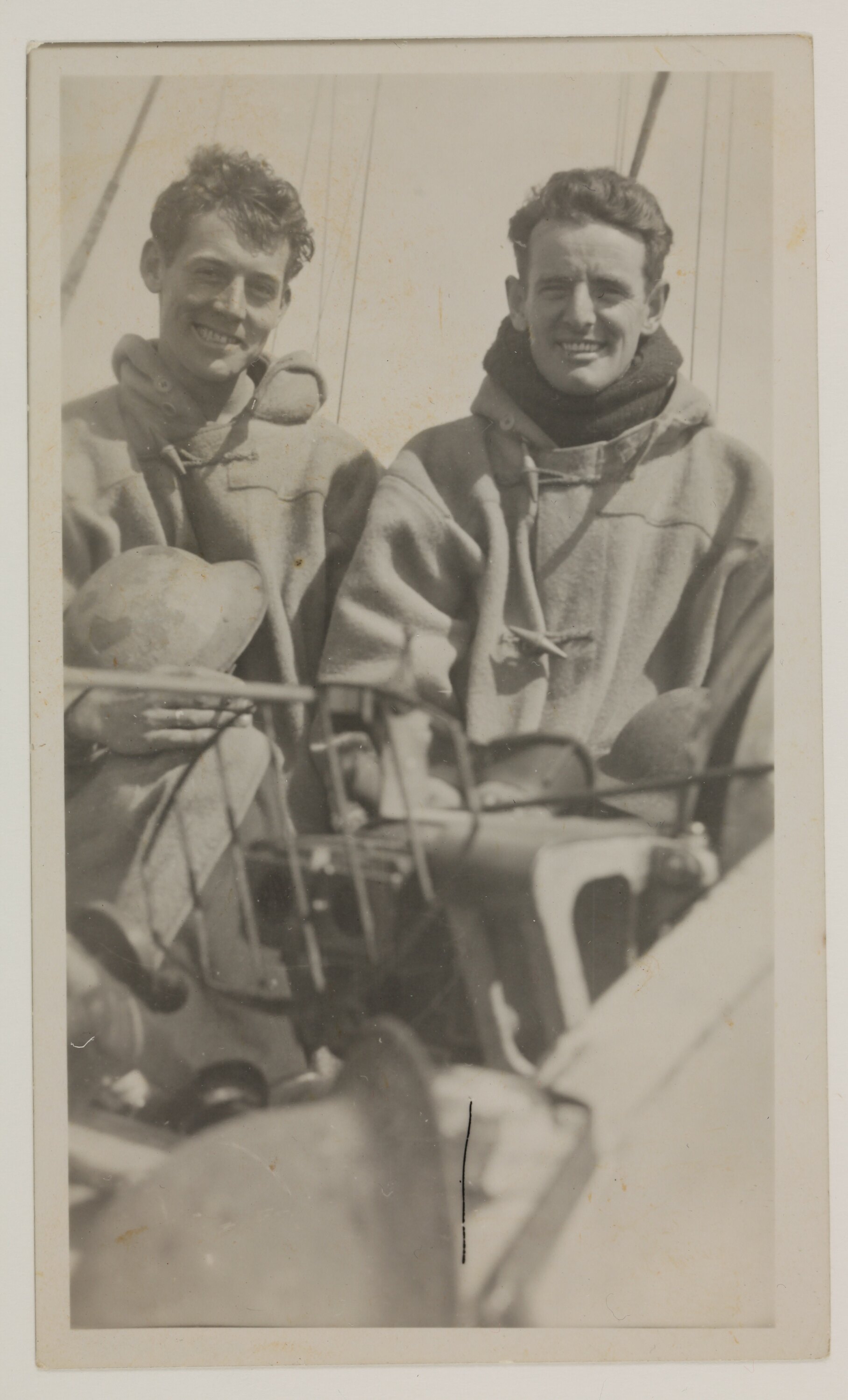 Portrait of two military personnel (one is possibly Ken Lynas) on board a ship during World War II.