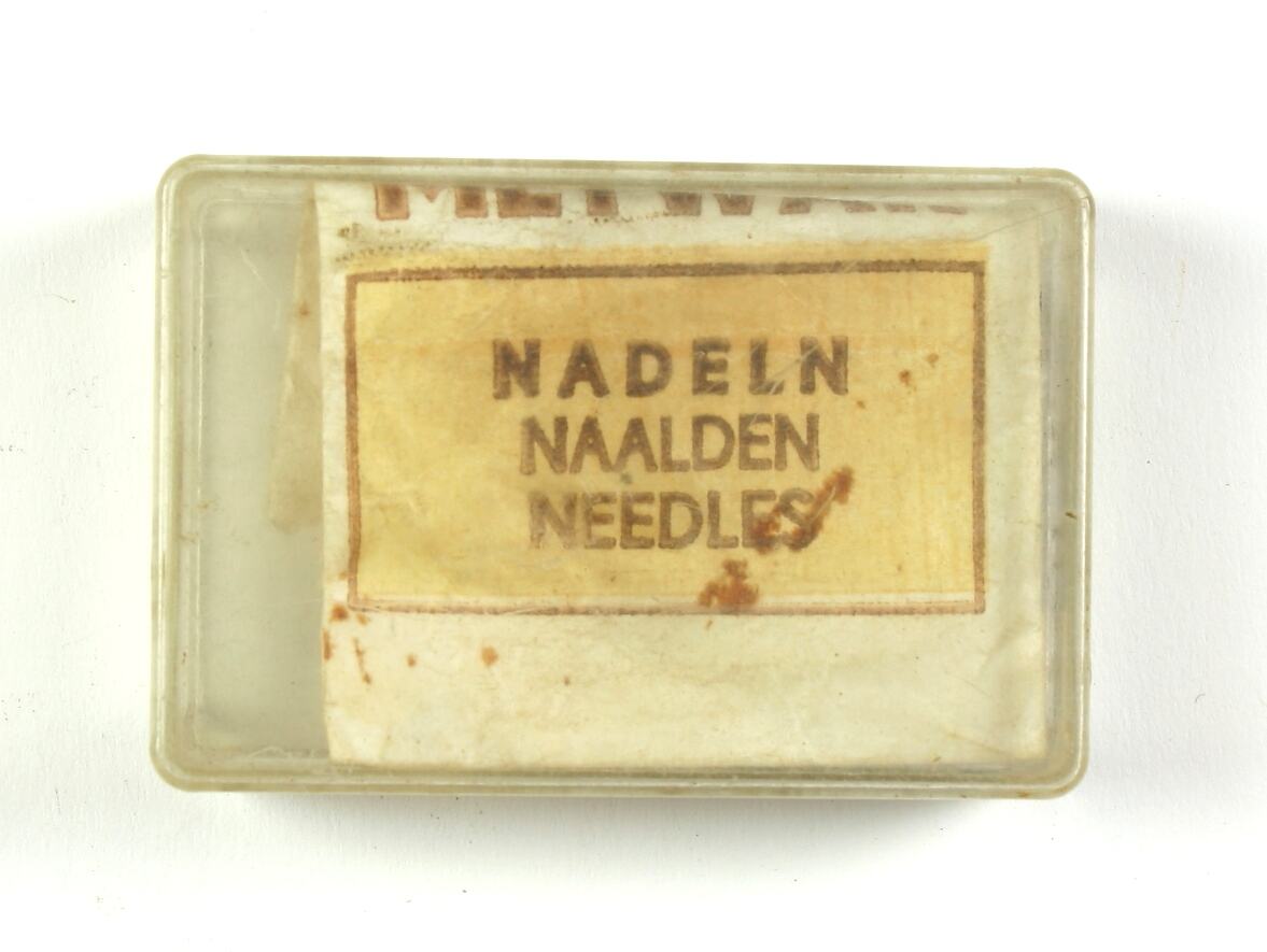Text, on envelope: METWAR/NADELN/NAALDEN/NEEDLES.