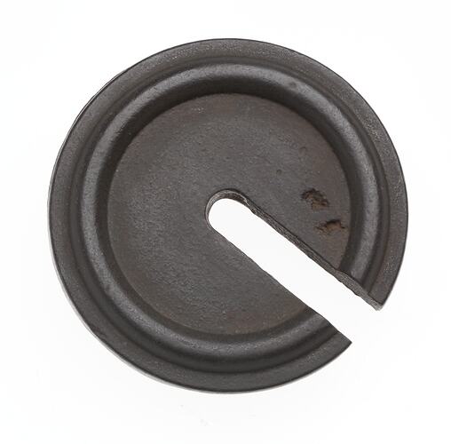 Weight used with 'Dubied' knitting machine, used by Edda Azzola from 1950 to 2000 for making commercial and personal clothing. This 'Dubied' knitting machine was brought to Australia from Italy in the 1950s by an Italian migrant woman and then sold to the Edda, who had migrated to Melbourne from Italy in 1955. Edda used it to supply a Collingwood knitting mill with finely finished clothes for sale to Melbourne department stores, until the factory closed in 1974. It was then used to make family clothes.