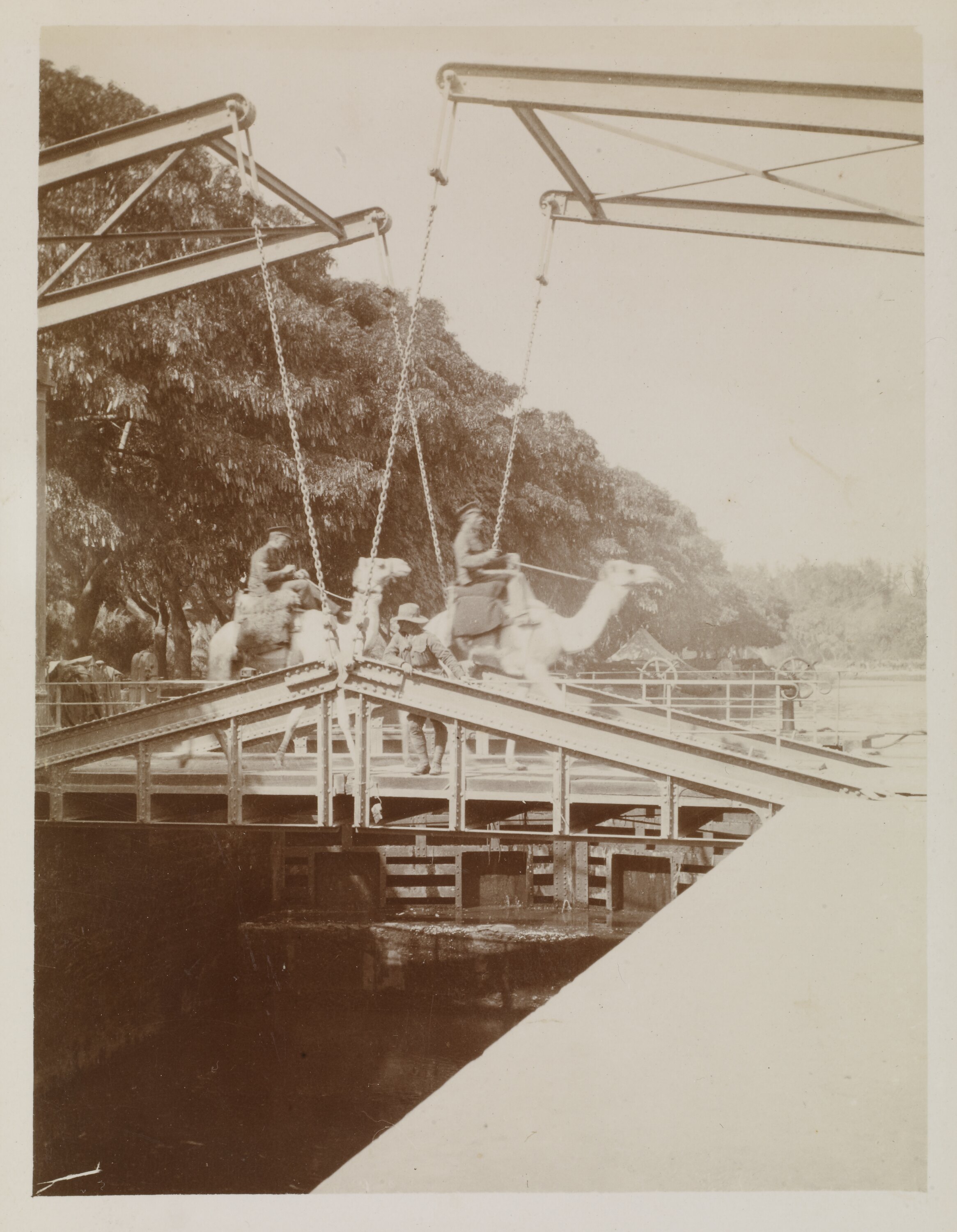 Hand written in ink on the support underneath the photograph: 'Crossing the Sweet water Canal Ismalia' Hand written in ink on the back of the photograph: 'Crossing the/Sweet water Canal/ Ismalia'