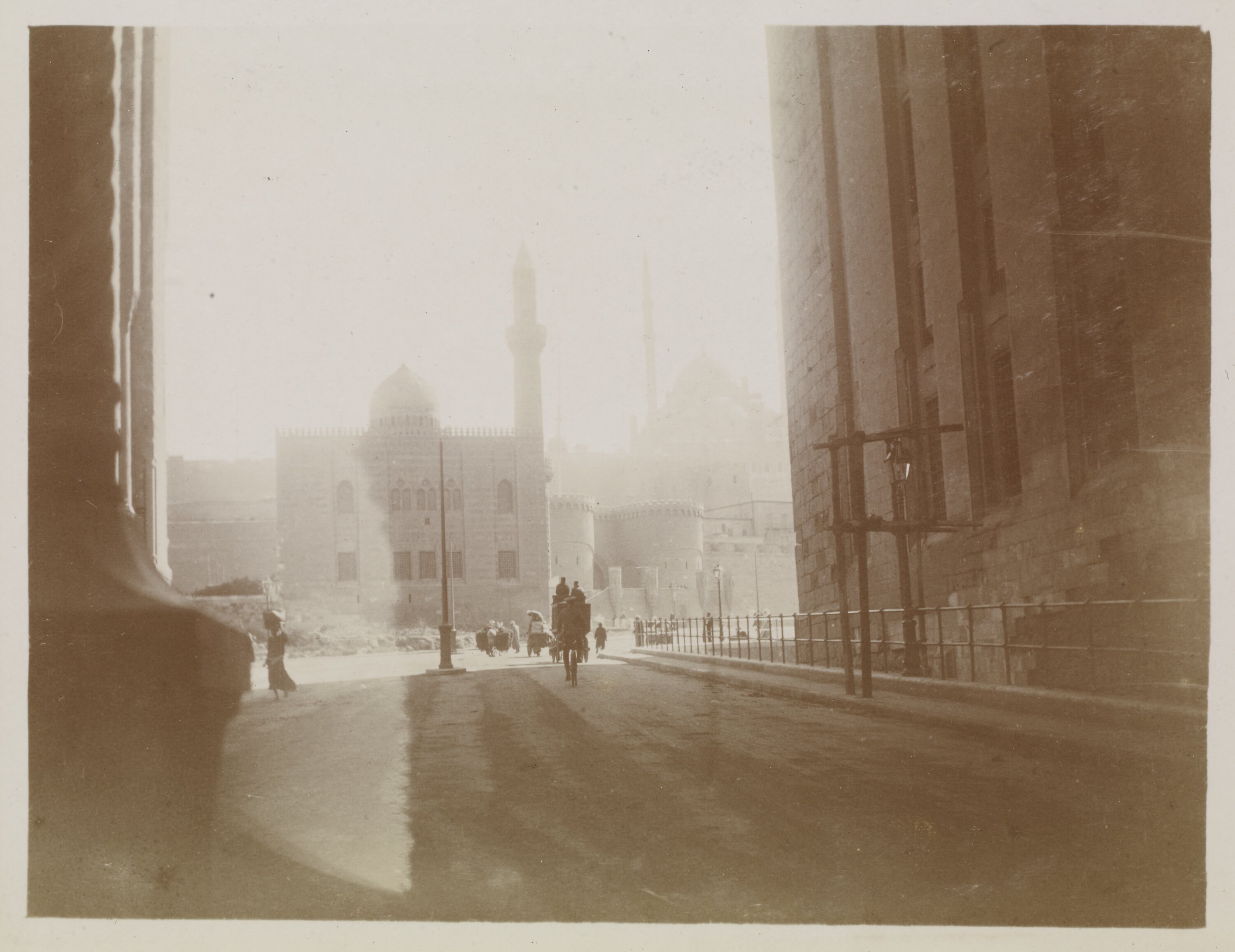 Hand written in ink on the support to the left of the photograph: 'Citadel / in / centre / in / the / distance' Hand written in ink on the support to the left of the photograph: 'Mosques / on / either / side' Hand written in pencil on the back of the photograph: 'Mosques on each side. Citadel in the centre / in the distance'