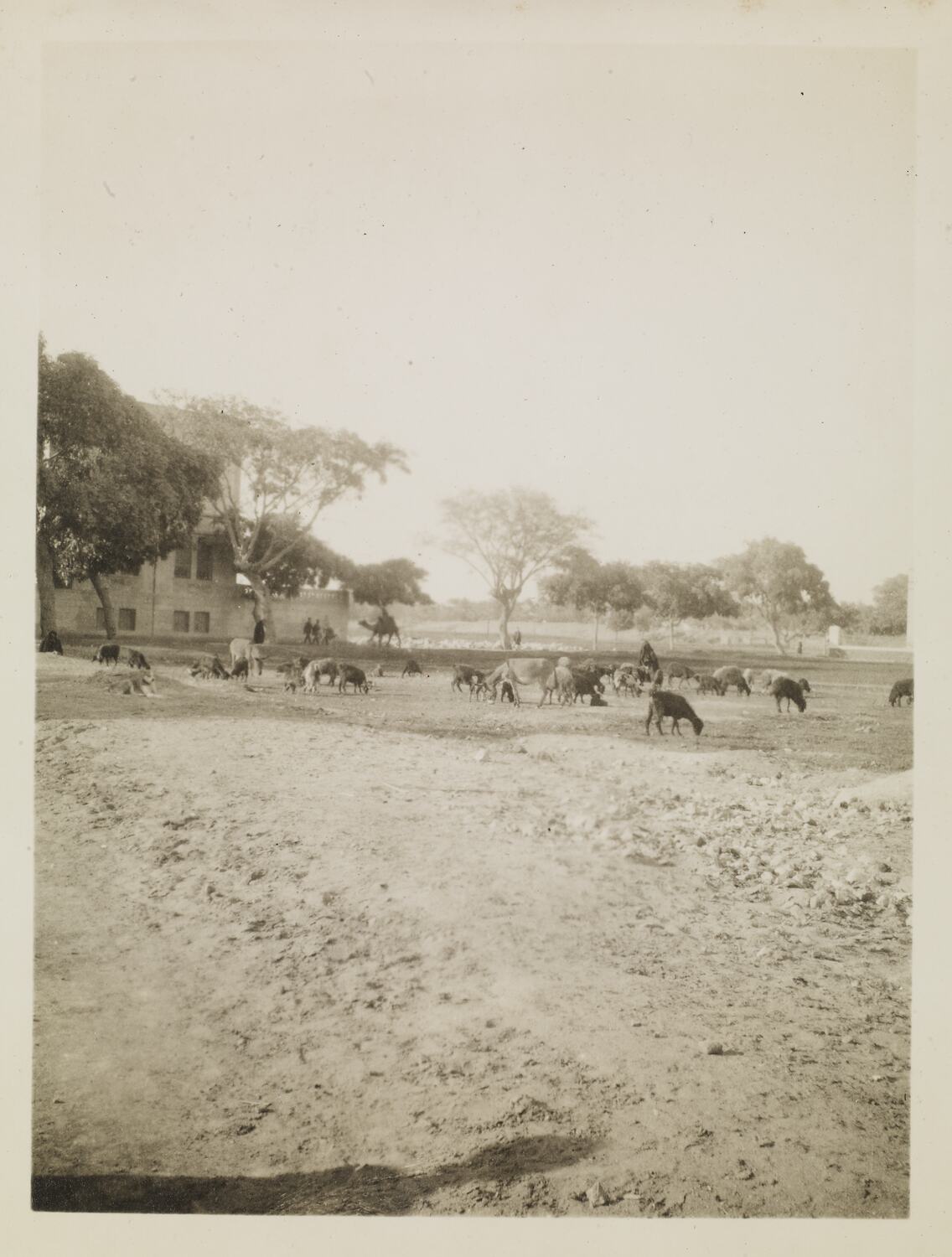 Hand written in ink on the support to the right of the photograph: 'Grazing the flock at Ismalia.' Hand written in ink on the back of the photograph: 'Grazing the flock / Ismalia'