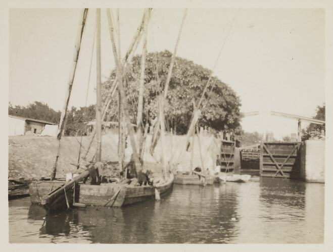 Image of the entrance to the 'Sweet Water Canal.' The Sweet Water Canal was constructed in 1861-3 to provide freshwater to Ismalia. The Sweet Water Canal is now known as the 'Ismalia Canal.'