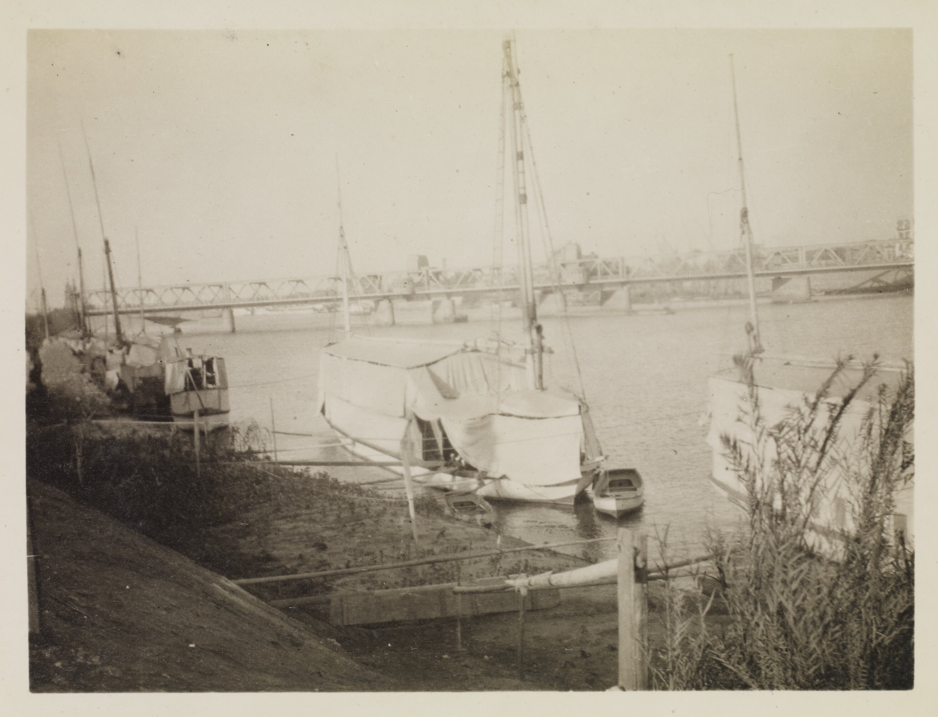 Image of a Nile scene, showing a group of vessels and a bridge.