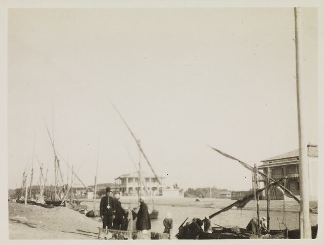 Hand written in ink on the support underneath the photograph: 'At Ismalia' Hand written in ink on the back of the photograph: 'At Ismailia'