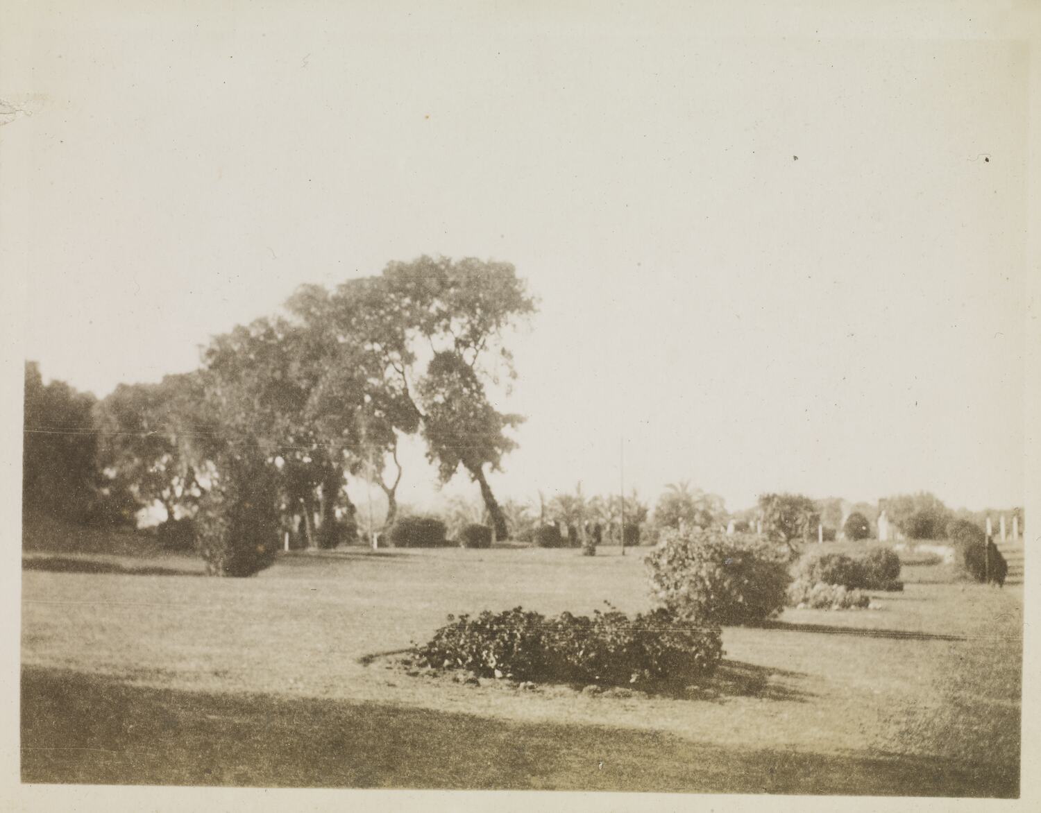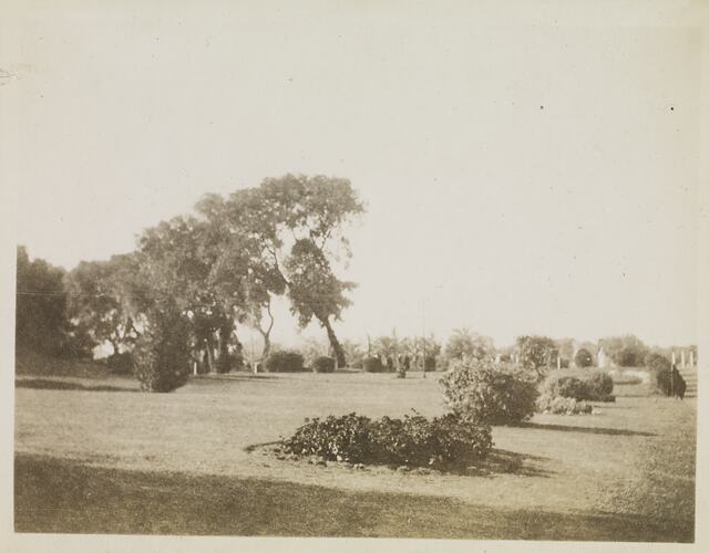 Hand-written in black ink on the support above the image: 'Views of the Gardens at Barage' Hand-written in pencil on the back of the photograph: 'The Gardens at Barage / thes are all flowering / shrubs the colourings / are glorious / Bakouria I think / a big purple flower / to very brilliant / I hope you know what I / mean I don't know if sheet correct'