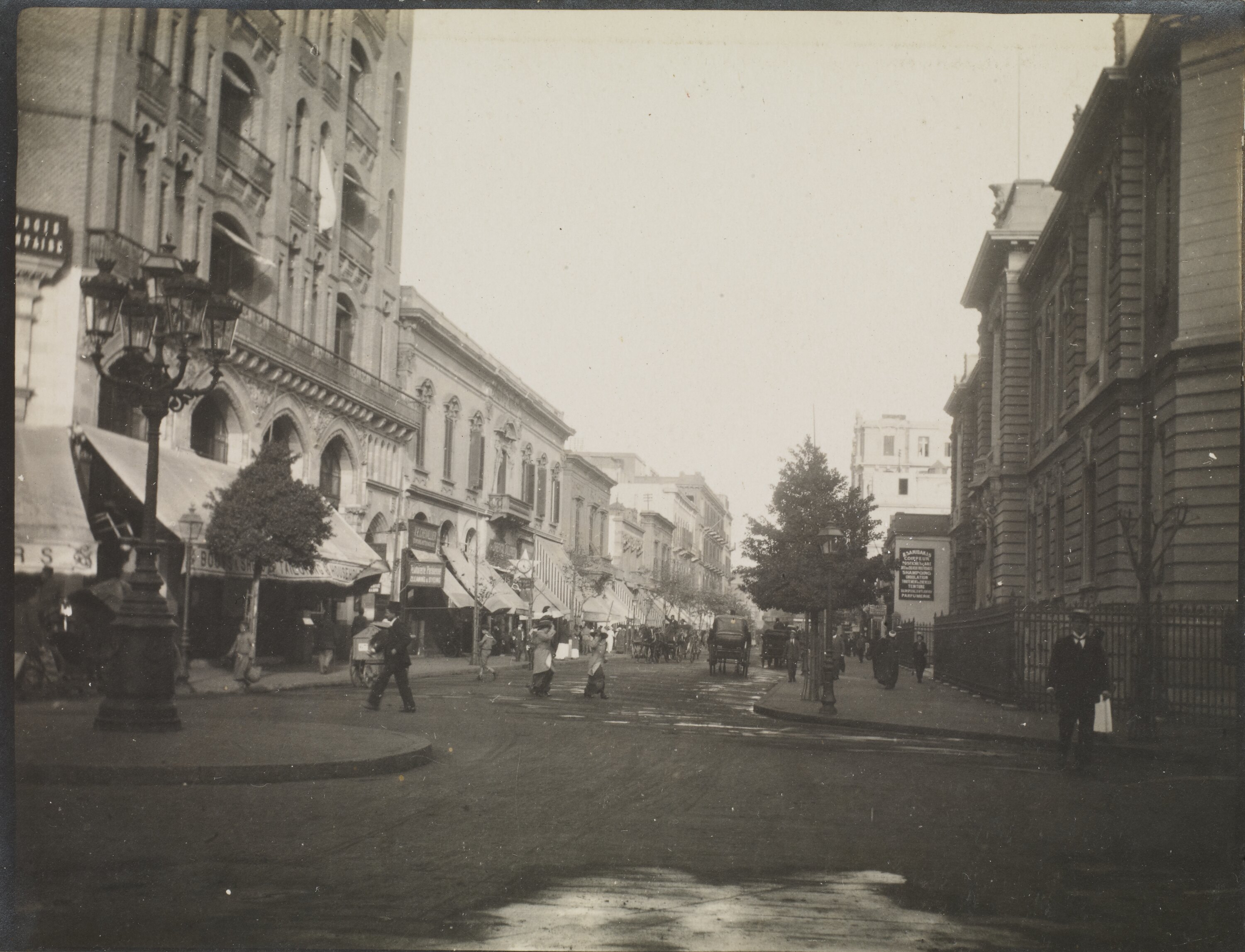 Hand-written in black ink on the support below the image: 'Street Scene Cairo' Hand-written in black ink on the back of the photograph: 'Street Scene Cairo'