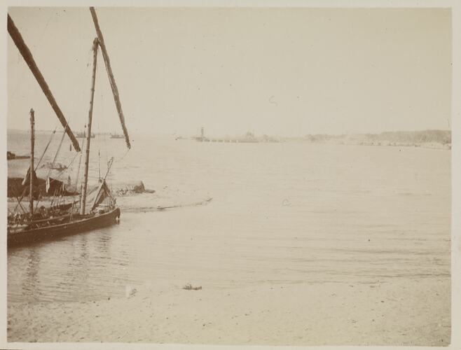 Hand written in ink on the support above the photograph: 'Lake Trinsah Ismalia' Hand written in ink on the back of the photograph: 'Lake Trinsah'