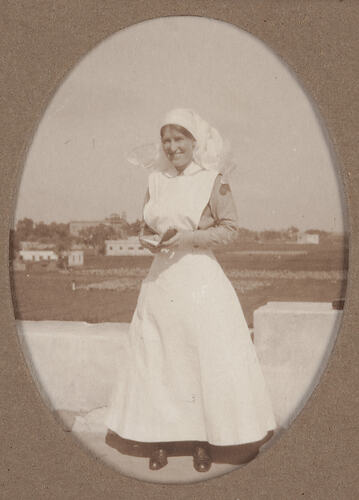 Digital image of a photograph from an album compiled by Sister Selina Lily (Lil) Mackenzie, documenting life as an Australian nurse during World War I. Lil nursed at the 1st Australian General Hospital (AGH) from October 1915 to January 1917. The 1st AGH was located in the Heliopolis Palace Hotel on the north-eastern edge of Cairo.