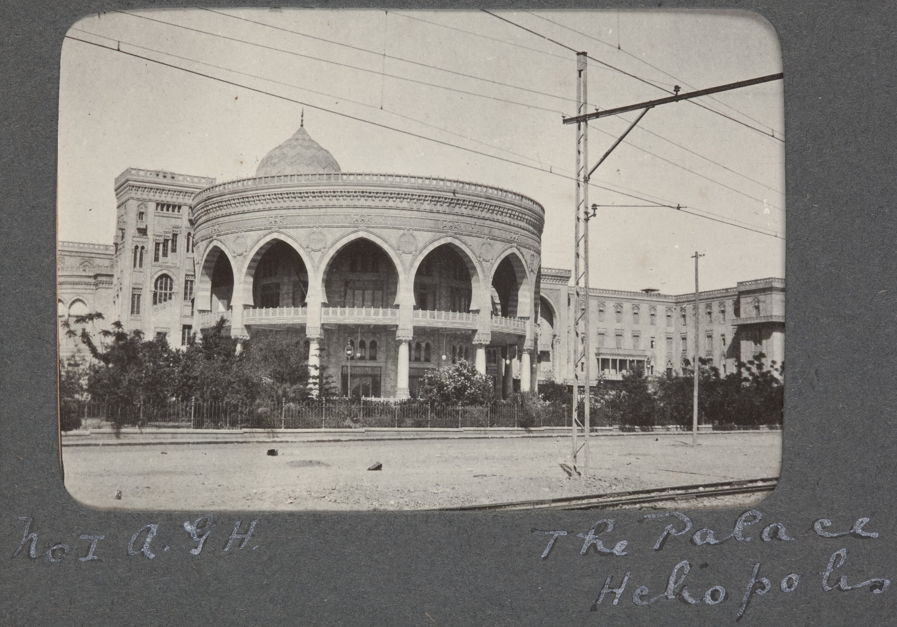 Digital image of a photograph from an album compiled by Sister Selina Lily (Lil) Mackenzie, documenting life as an Australian nurse during World War I. Lil nursed at the 1st Australian General Hospital (AGH) from October 1915 to January 1917. The 1st AGH was located in the Heliopolis Palace Hotel on the north-eastern edge of Cairo.
