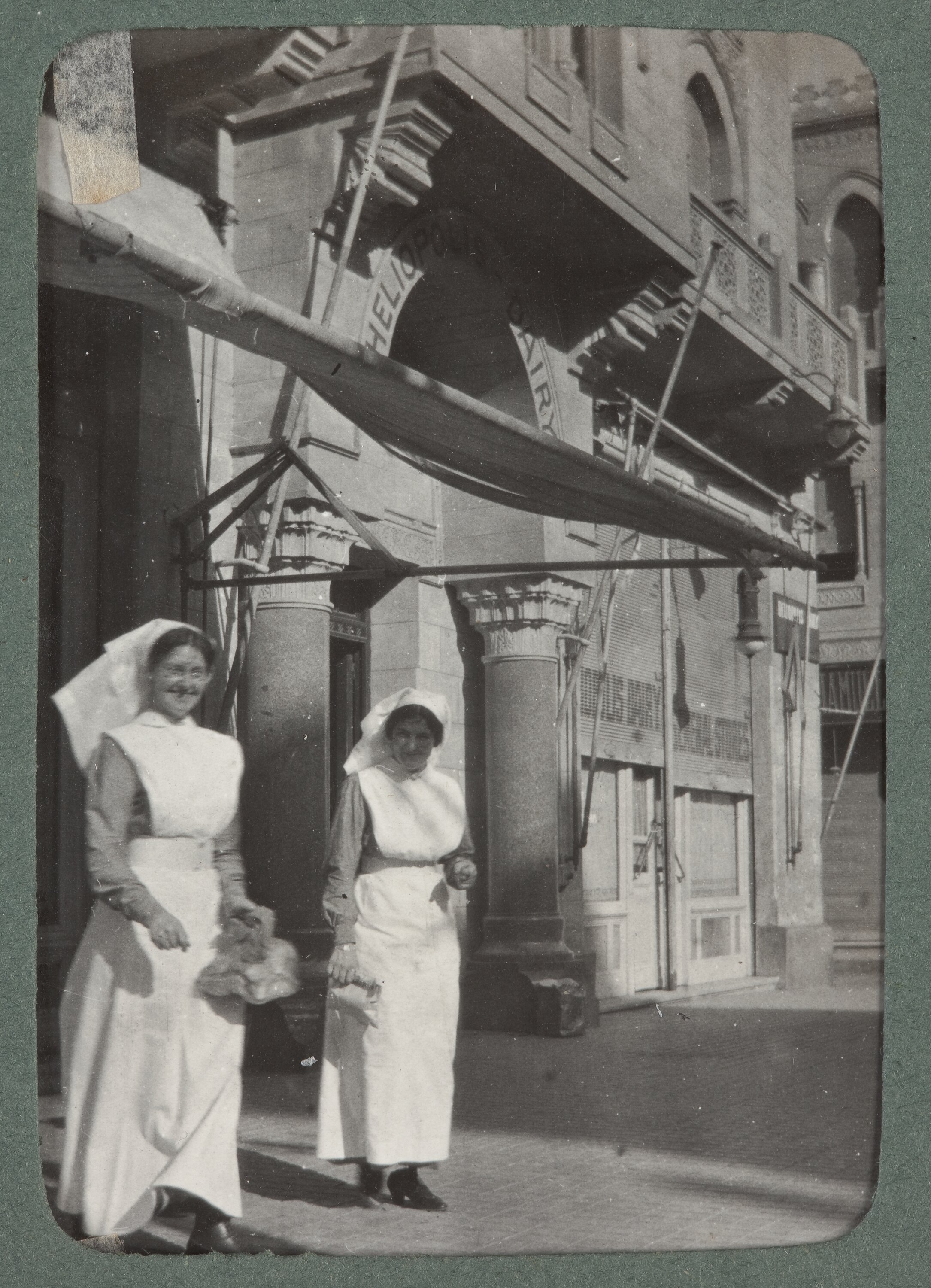Digital image of a photograph from an album compiled by Sister Selina Lily (Lil) Mackenzie, documenting life as an Australian nurse during World War I. Lil nursed at the 1st Australian General Hospital (AGH) from October 1915 to January 1917. The 1st AGH was located in the Heliopolis Palace Hotel on the north-eastern edge of Cairo.