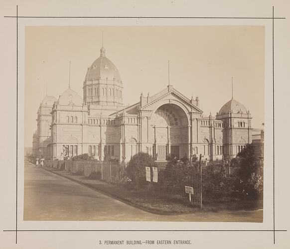 This is one of sixty-one photographs in a presentation photograph album titled '1880 Melbourne International Exhibition' presented to Thomas B. Hill. Hill was the Assistant Secretary of the 1880 Melbourne International Exhibition. This leather bound album was given to Hill, and all the Exhibition Commissioners, by the Exhibition Trustees. The photographer is believed to be Ludovico Hart, acting on a private commission from the Exhibition Trustees.