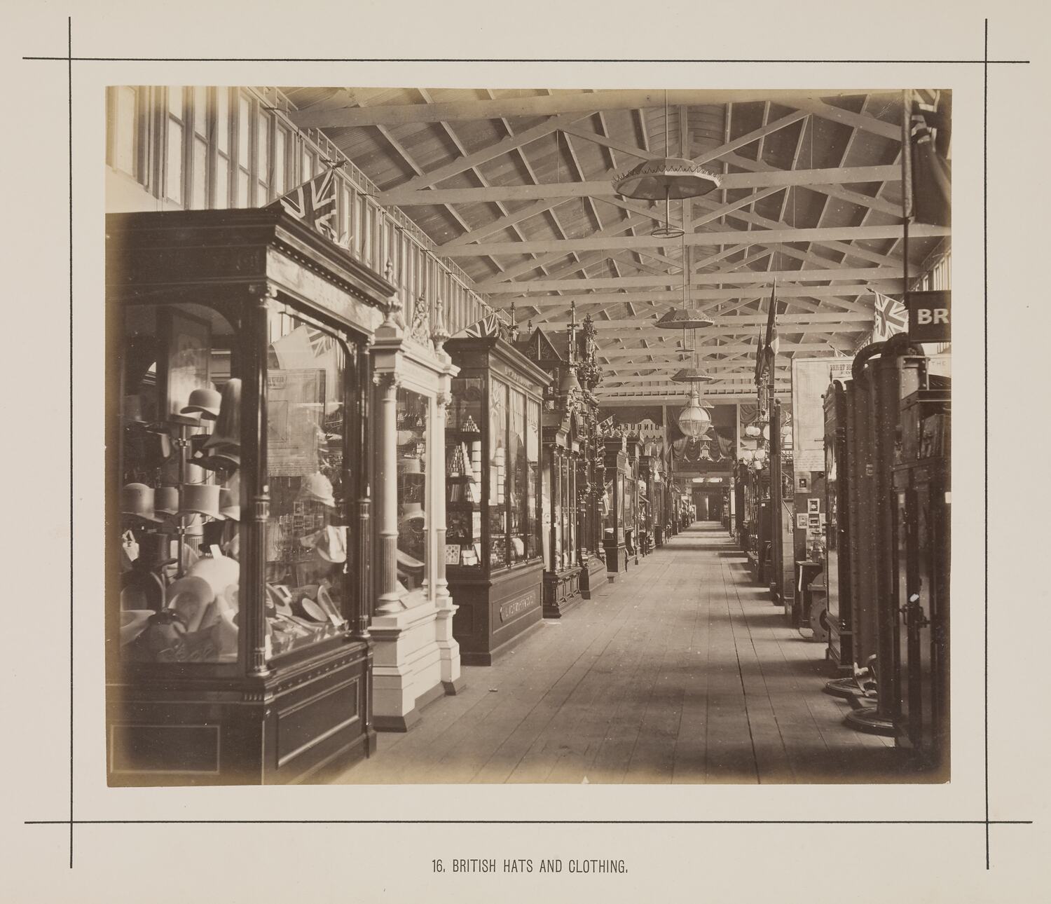 Printed in black ink on card below the photograph: '16. BRITISH HATS AND CLOTHING.'
