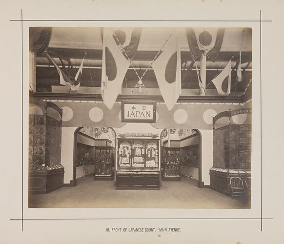 Printed in black ink on card below the photograph: '51. FRONT OF JAPANESE COURT. - MAIN AVENUE'
