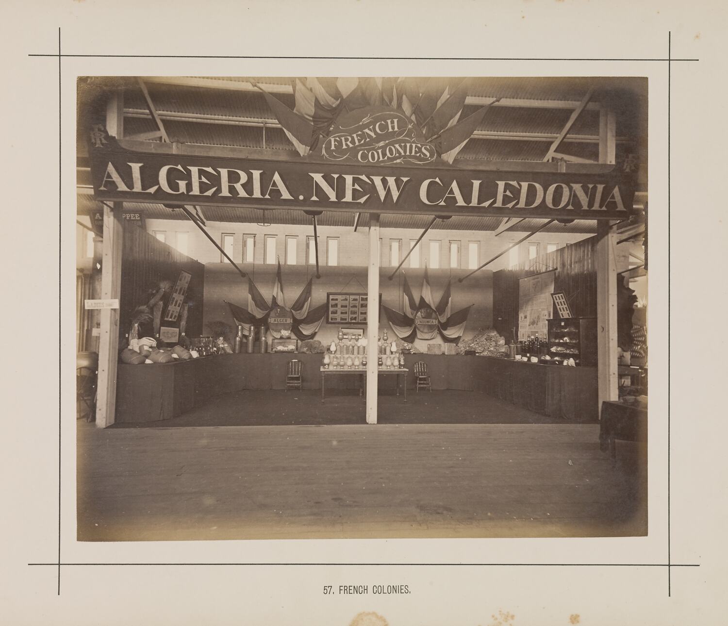View of the French colonial courts of Algeria and New Caledonia, appropriated into the allocated space for France in the Western Machinery Annexe at the 1880 Melbourne International Exhibition held at the Exhibition Buildings, Carlton Gardens, between 1 October 1880 and 30 April 1881.