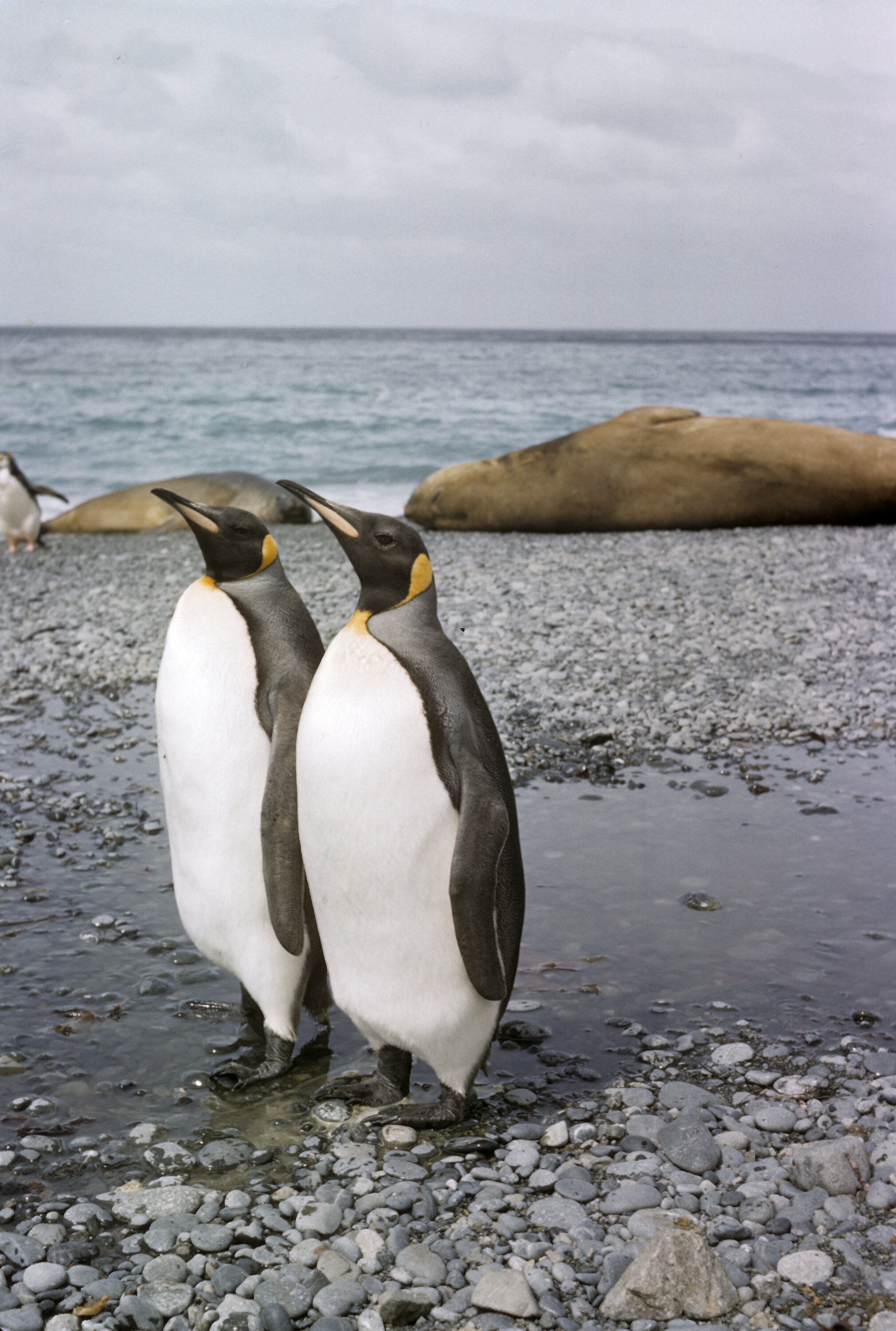 This image of King Penguins was taken on Macquarie Island in 1950 during Ian Black's time as Meteorolgist. Ian met his future bride, the Malacologist, while working on Macparurie Island.