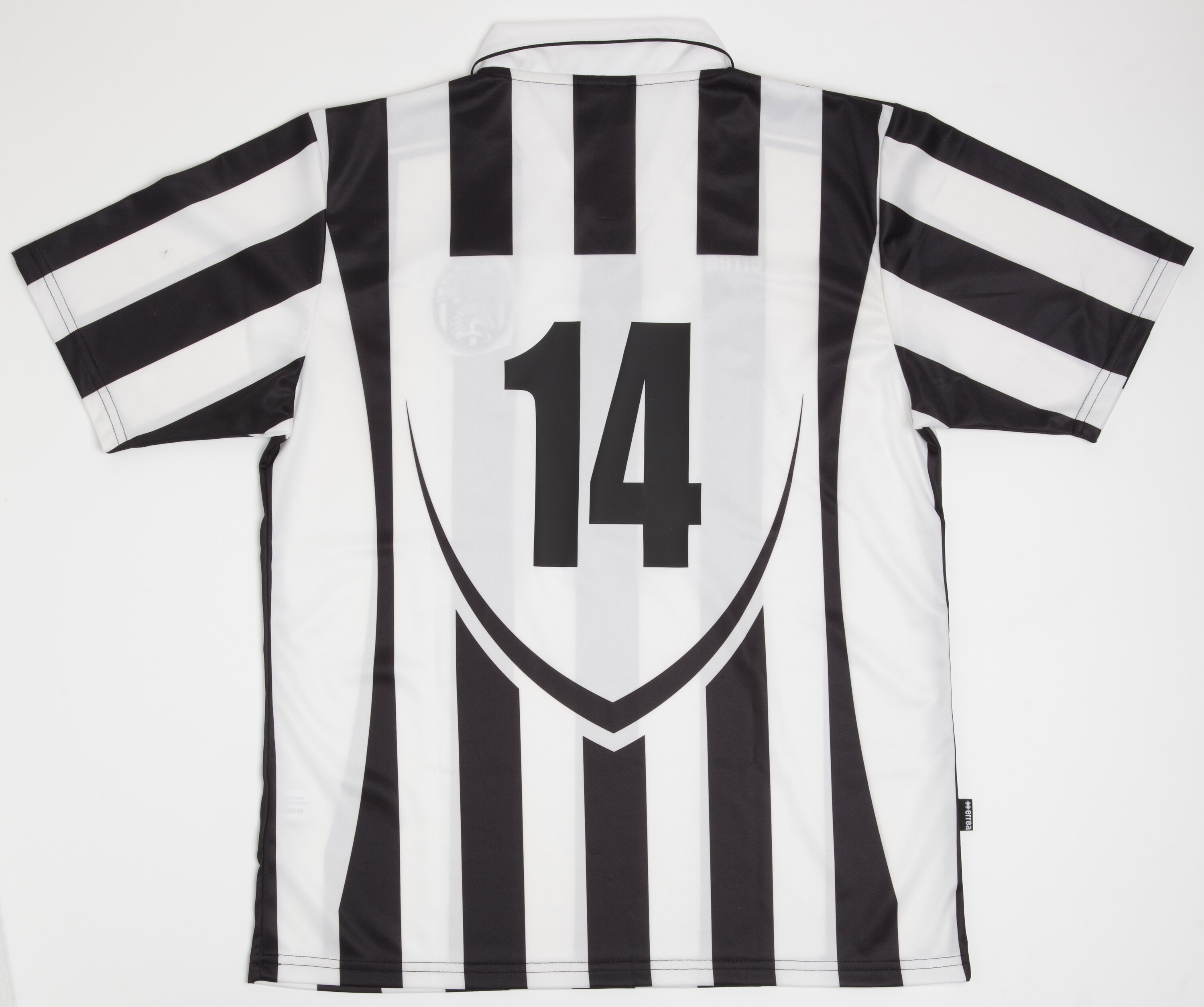 Front: Printed: BRUNSWICK ZEBRAS F.C./VITTORIA COFFEE/ERREA Back: 14