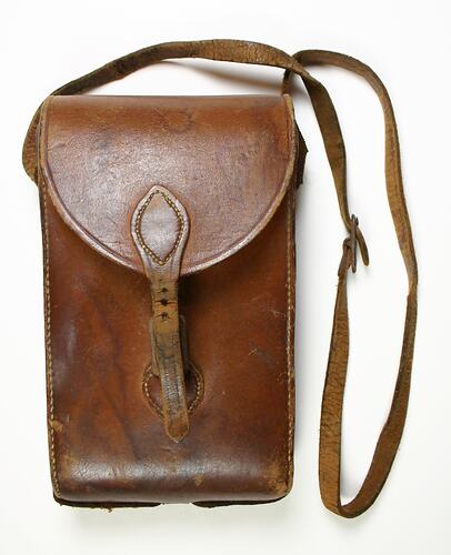 No. 1 Kodak Jr camera and leather case, manufactured by Eastman Kodak Company in Rochester, New York, 1914-1915. The camera was used by Sister Selina Lily (Lil) Mackenzie to record her experiences in Egypt serving with the 1st Australian General Hospital, 1915-1917. The 1st AGH was located in the Heliopolis Palace Hotel on the north-eastern edge of Cairo.