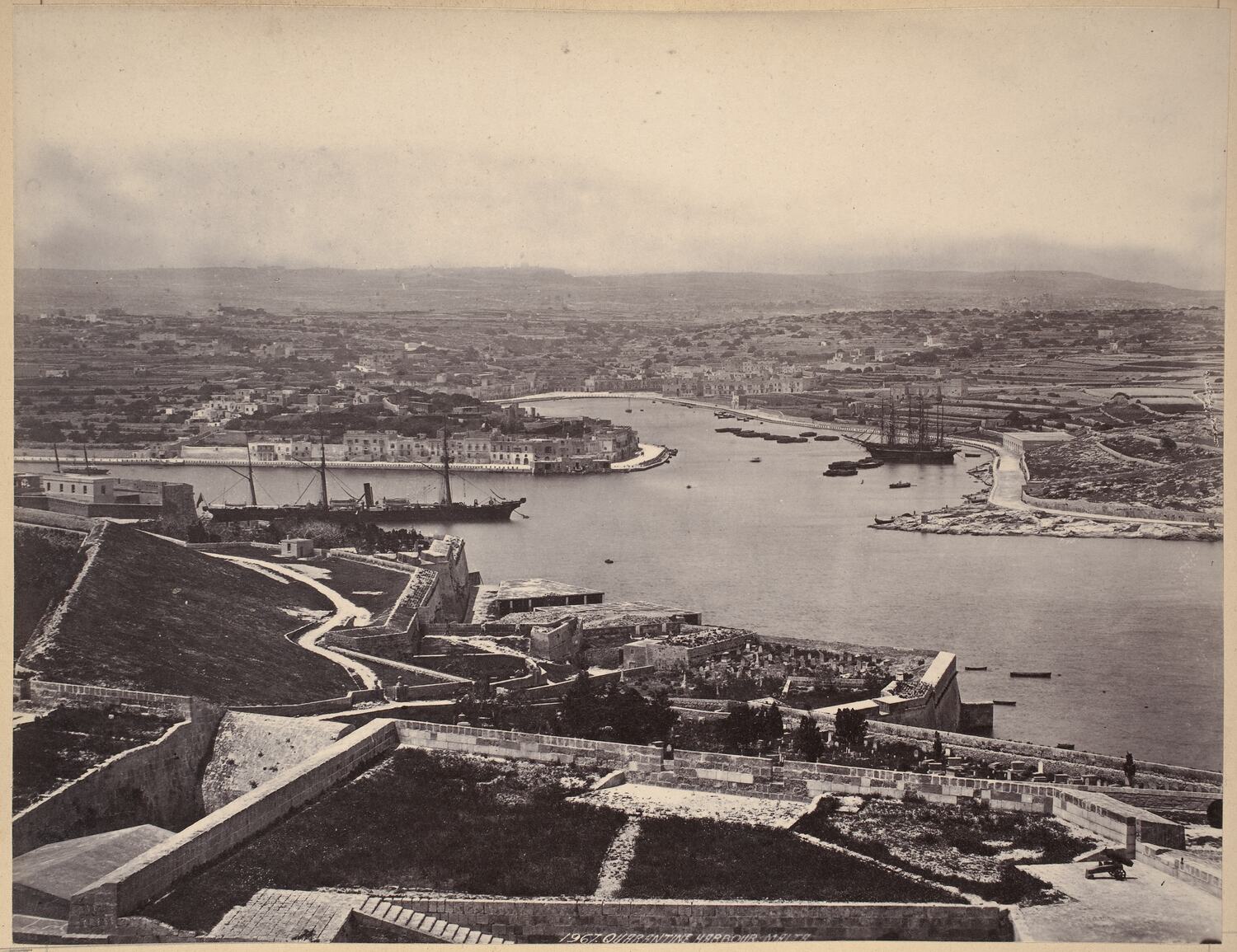 View of Quarantine Harbour and beyond, Malta. Photograph by Francis Frith, circa 1870.