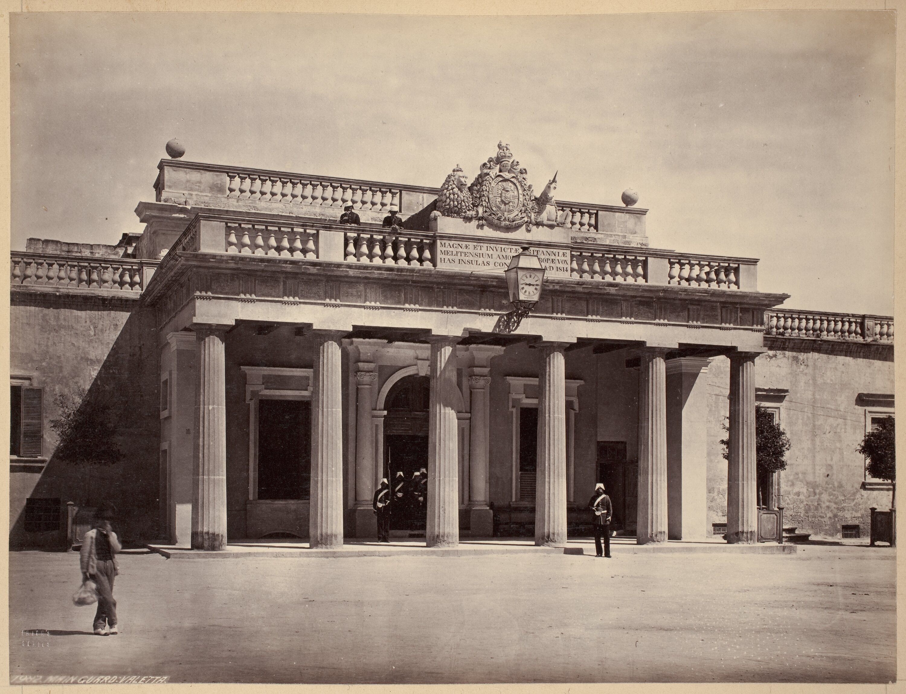 View of the Main Guard in Valetta, Malta, situated on Piazza San Giorgio in front of the Governor's Palace. Photograph by Francis Frith, circa 1870.
