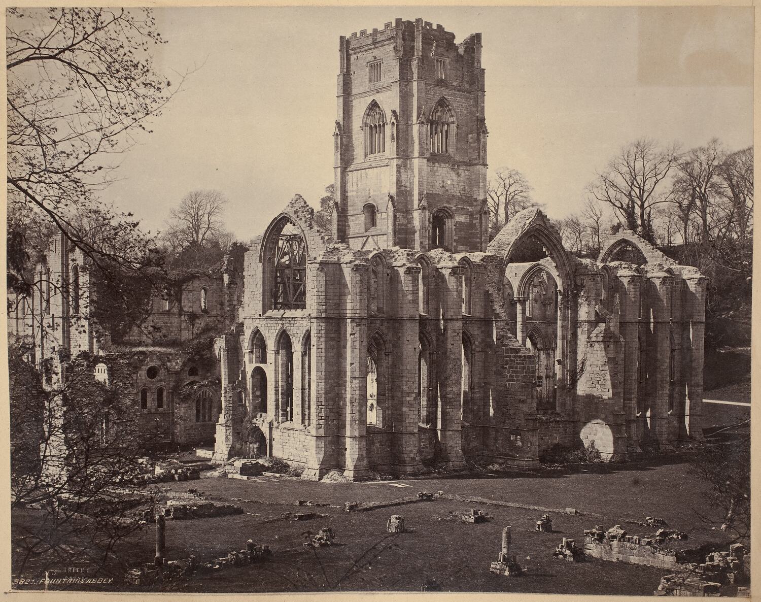 View of the ruins of Fountains Abbey, North Yorkshire, England, circa 1870.