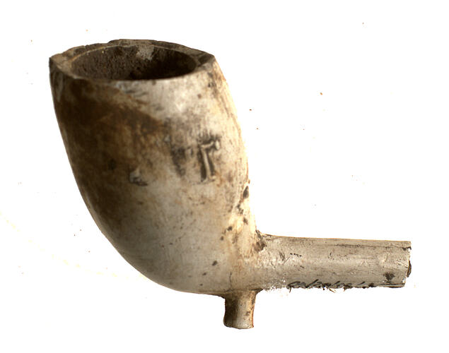 This clay tobacco pipe bowl, spur and stem was excavated at the Commonwealth Block site between 1988 and 2003.