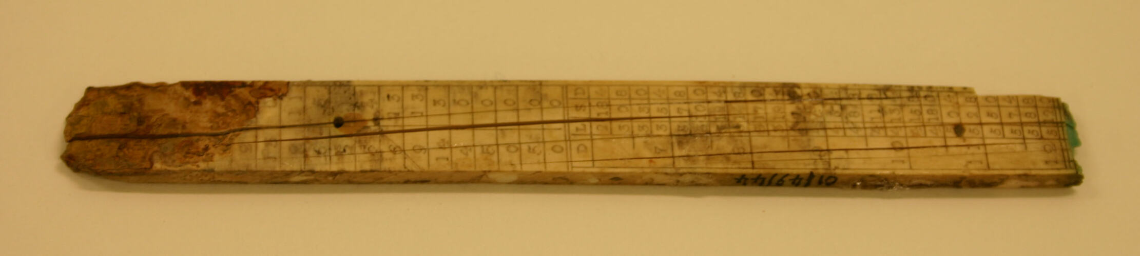 This ivory slide rule was excavated during one of digs conducted at the Commonwealth Block site between 1988 and 2003.