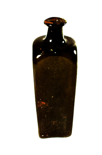 This brown glass gin bottle was excavated at the Commonwealth Block site between 1988 and 2003. It was manufactured between 1850 and 1870.
