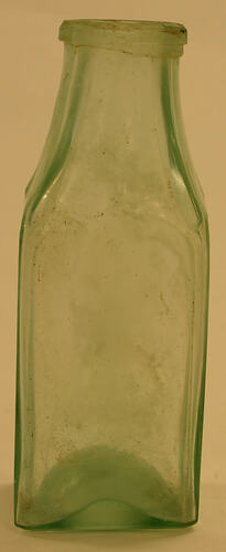 This light green glass bottle was excavated at the Commonwealth Block site between 1988 and 2003. It was manufactured using a two-piece mould between 1870 and 1890