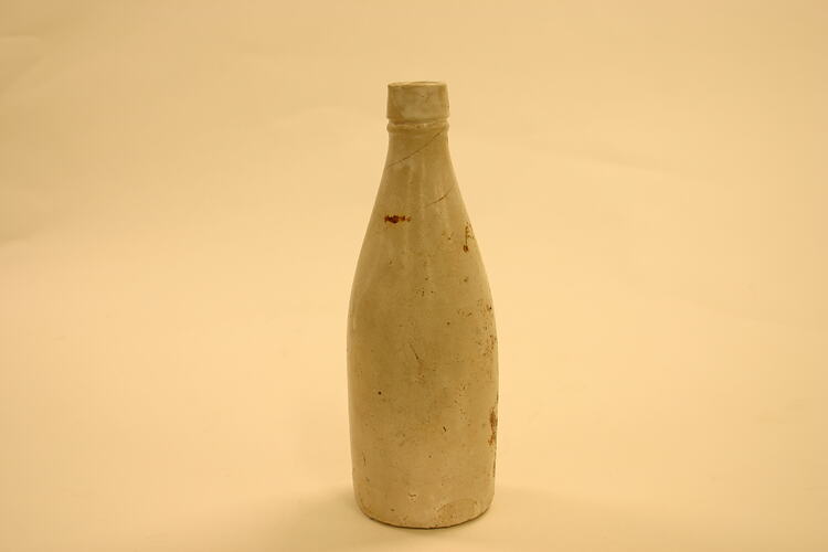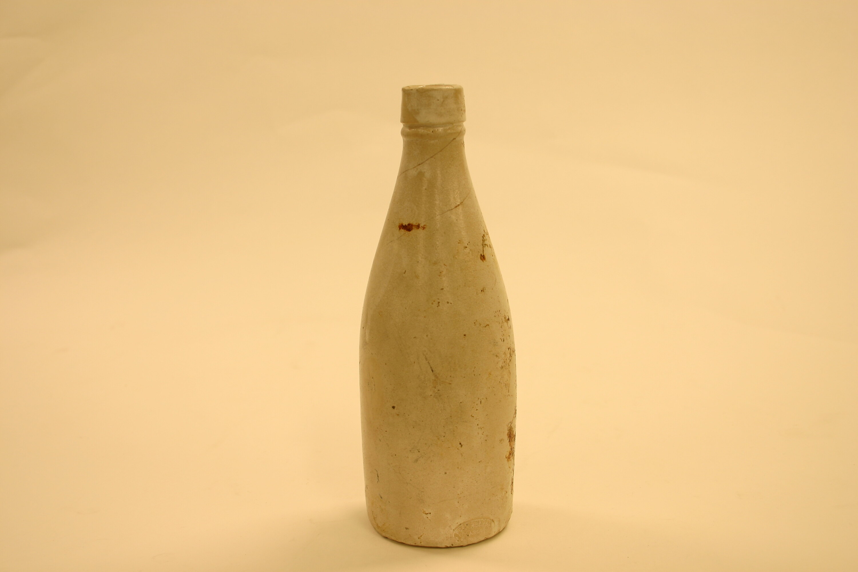 Stoneware porter or stout bottle. Beige Bristol-glaze. 22 cm high, 7 cm diam eter. Marked: PORT DUNDAS GLASGOW on side, near base. Dates given by Christine Williamson, archaeologist, 1999.