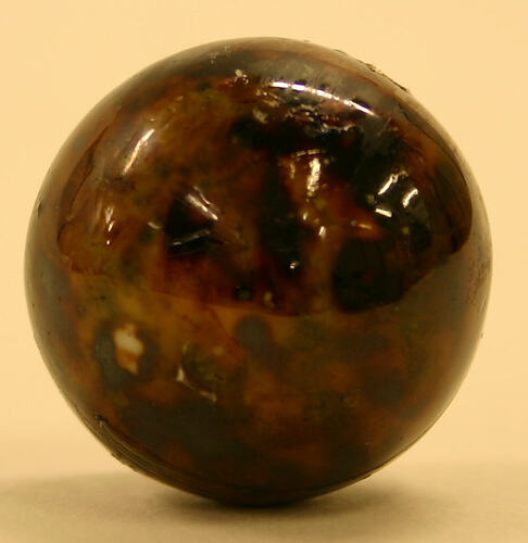 This brown glazed ceramic marble was excavated at the Commonwealth Block site between 1988 and 2003.