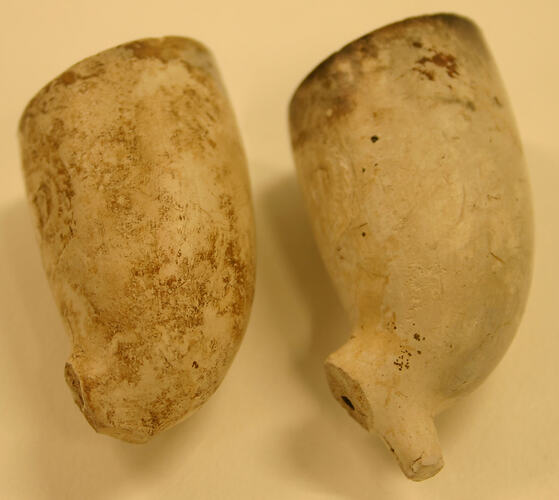 These two tobacco pipe bowls were excavated at the Commonwealth Block site between 1988 and 2003.