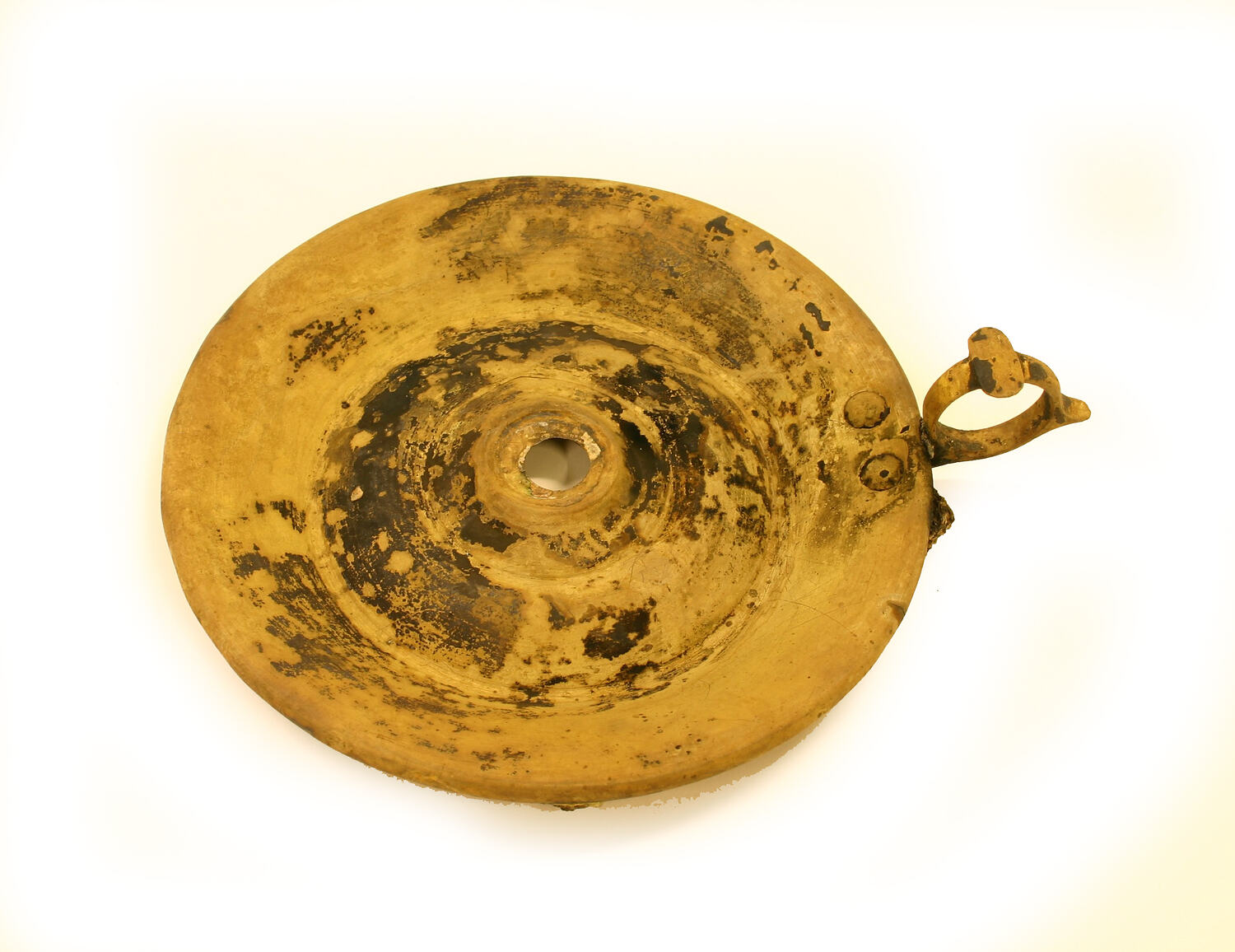 The base and handle of this candle stick was excavated at Casselden Place in 2003. It would have been used domestically.