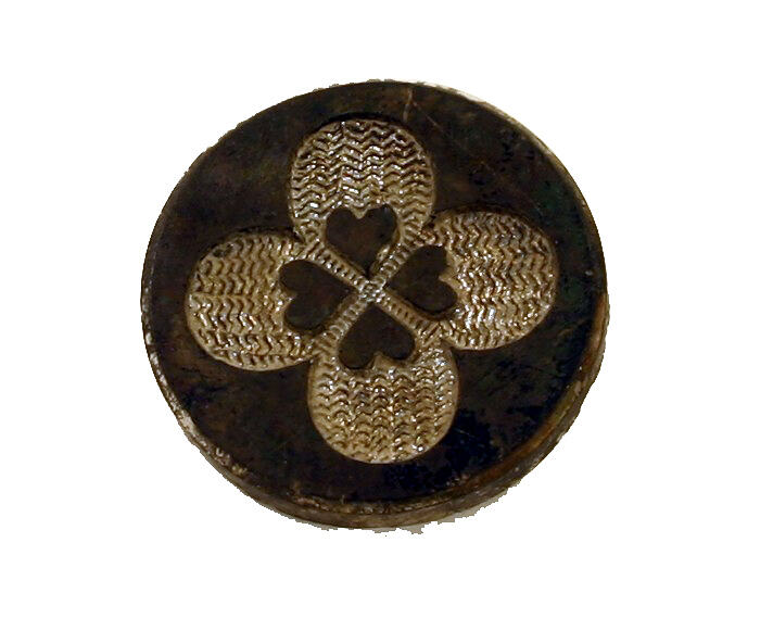 This button was excavated at Casselden Place in 2003. It has a shamrock motif.