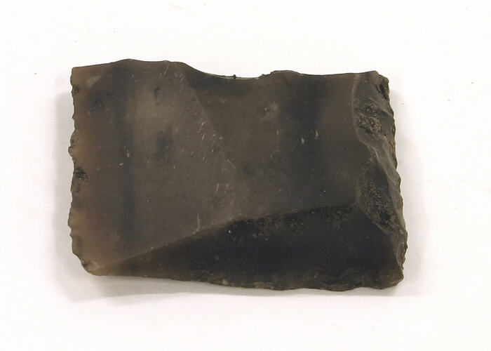 This small piece of dark flint would have been made to be used in a gun, though it does not appear to have been used.