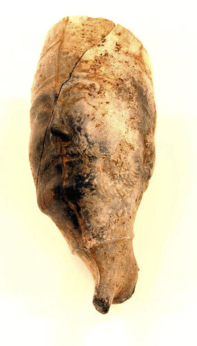 A pipeful of tobacco was long-lasting and its aroma disguised the stench of Melbourne's streets. The short clay pipe favoured by working men was called a 'cutty'. Being made of brittle clay, these pipes broke easily, explaining the abundance of fragments uncovered at Little Lon. Of the pipes excavated, many were decorated with slogans, patriotic symbols, even jokes and caricatures, hinting at the identities of those who smoked them.