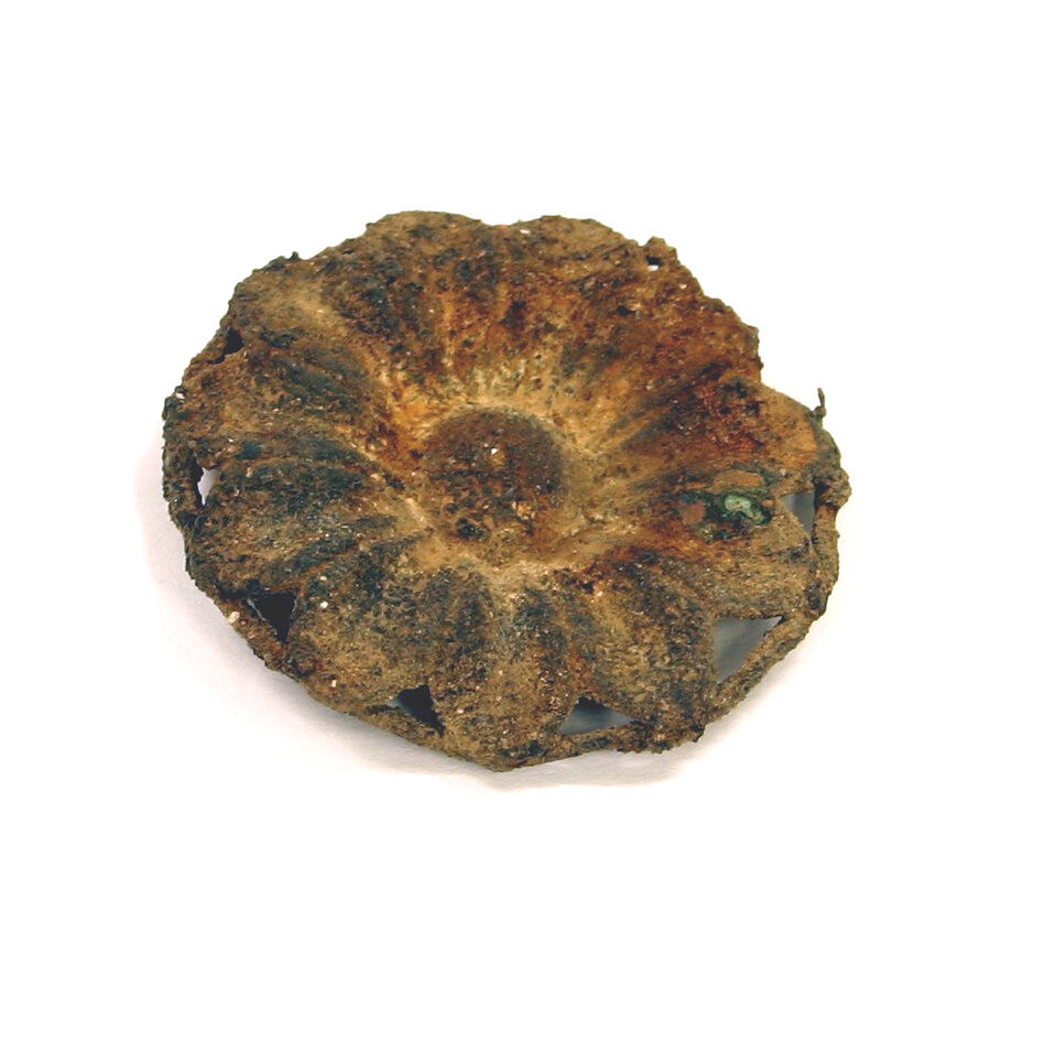 Brooch, design of flower, with outer ring. Slightly rusted - iron alloy.