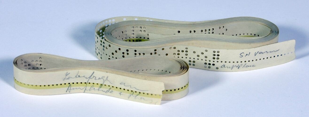 The collection includes the original University of Melbourne Computation Laboratory Paper Tape Library of 12 hole tapes of subroutines and programs, and program and data tapes from staff and outside users. Most of the paper tapes were 12-track punched paper tapes. 5 hole paper tapes were used primarily for data input and output rather than program input. However, 5 hole program tapes could be produced by using Interprogram, an English language programming system rather than using machine language.