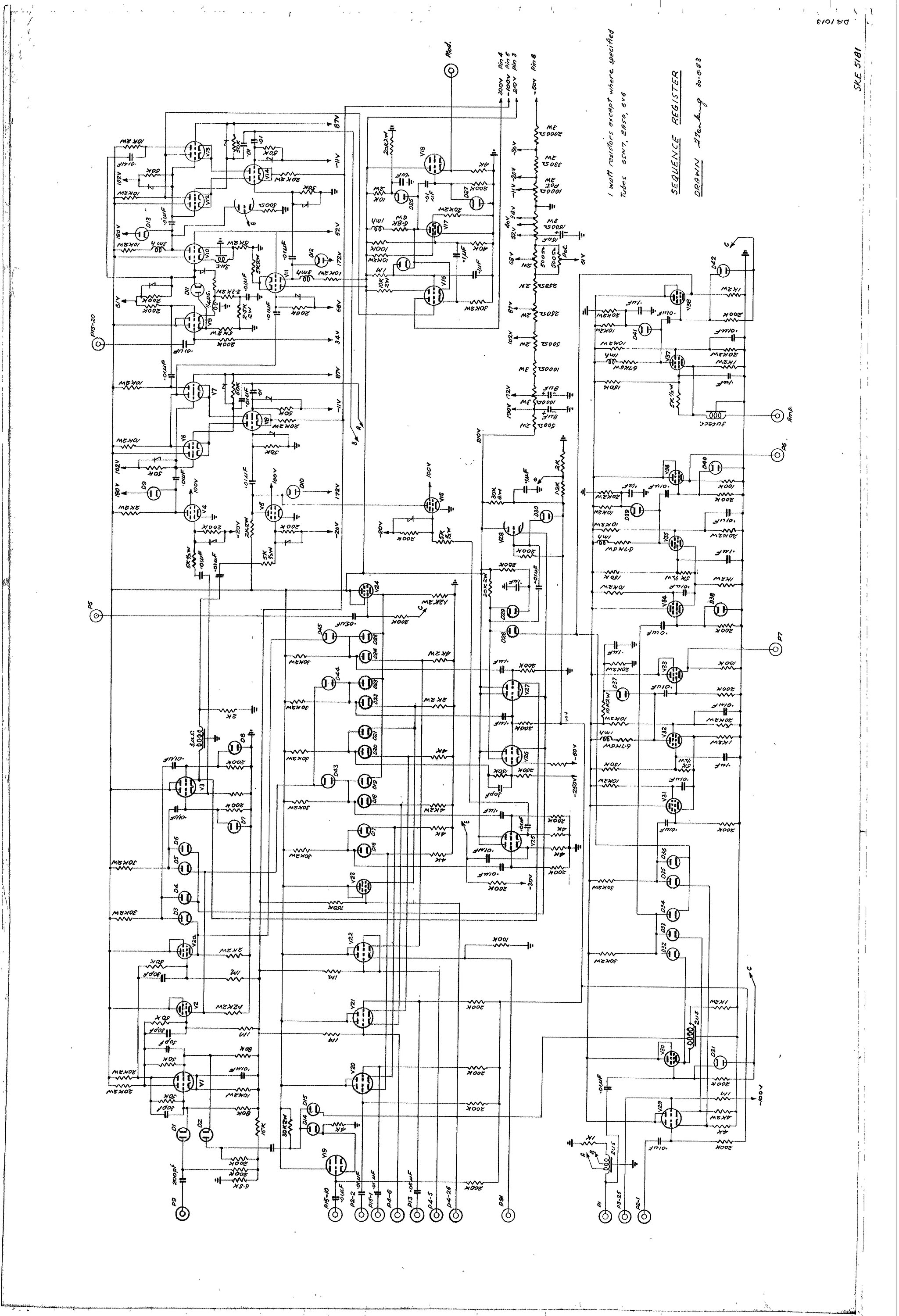 A schematic diagram shows the detailed connections between all the components in a circuit. Such diagrams were used to build circuits and later for testing. For CSIRAC, the most common components were vacuum tubes (valves), capacitors and resistors. Schematic diagrams are also known as circuit diagrams.