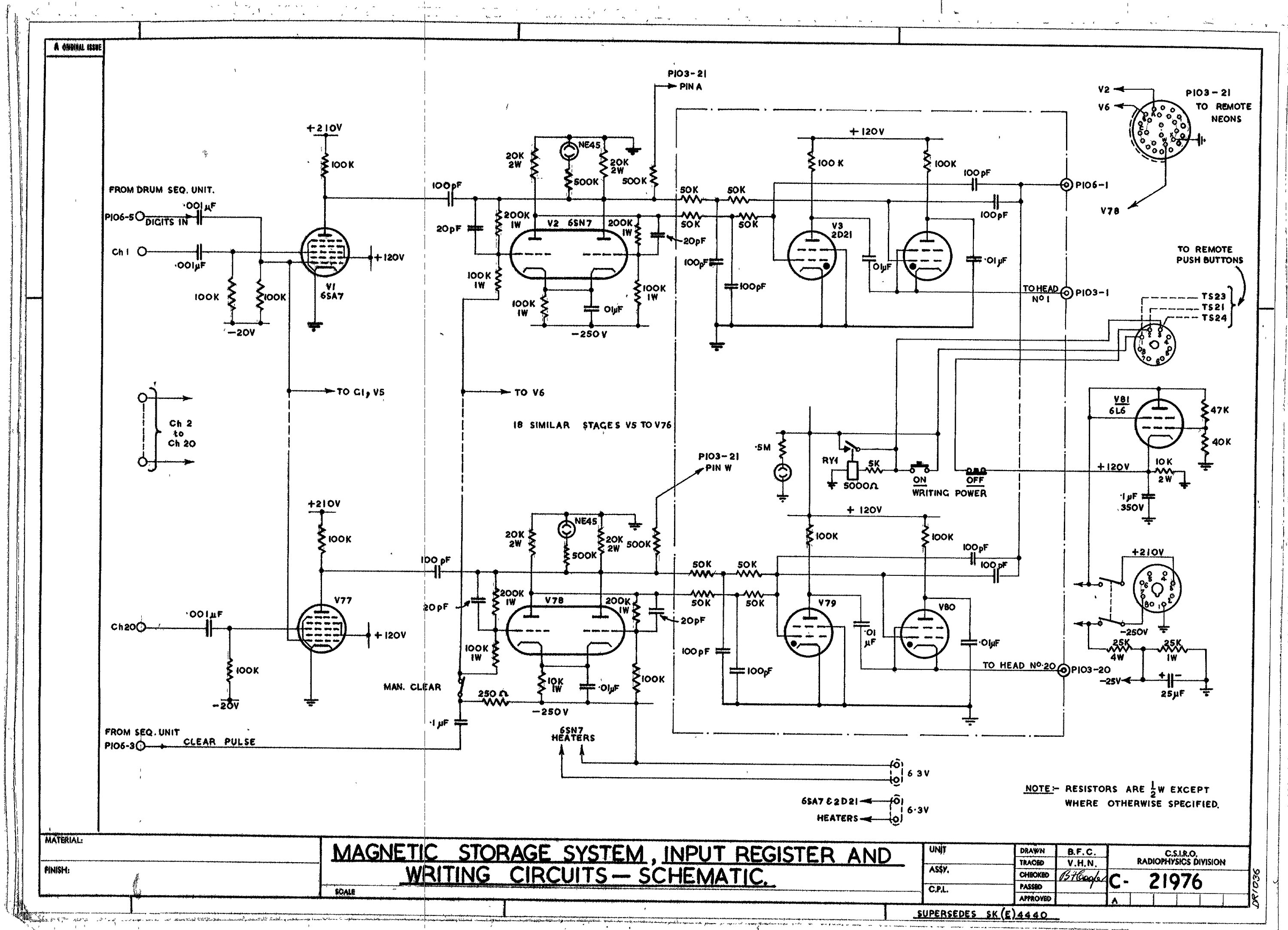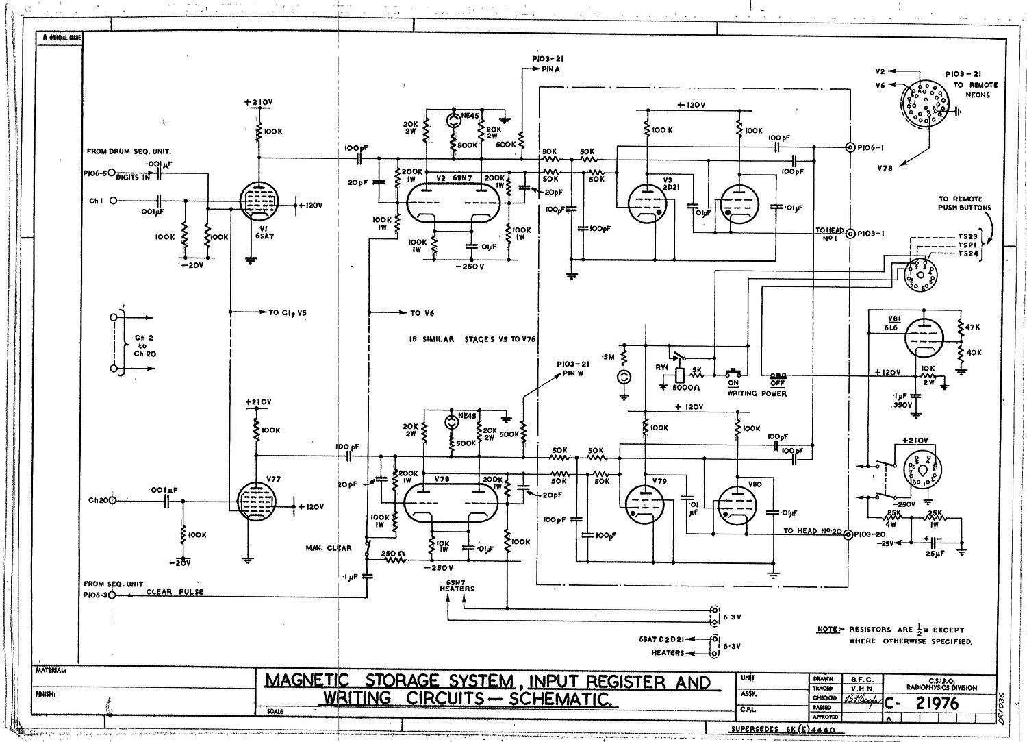 Schematic diagram in hard copy relating to the computer CSIRAC.
