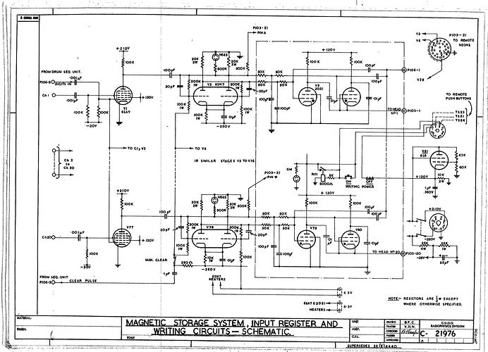 Technical details:Schematic Diagram. Subsystem: Drum. Drawn/checked by B.F.C. V.H.N., B.Hooper