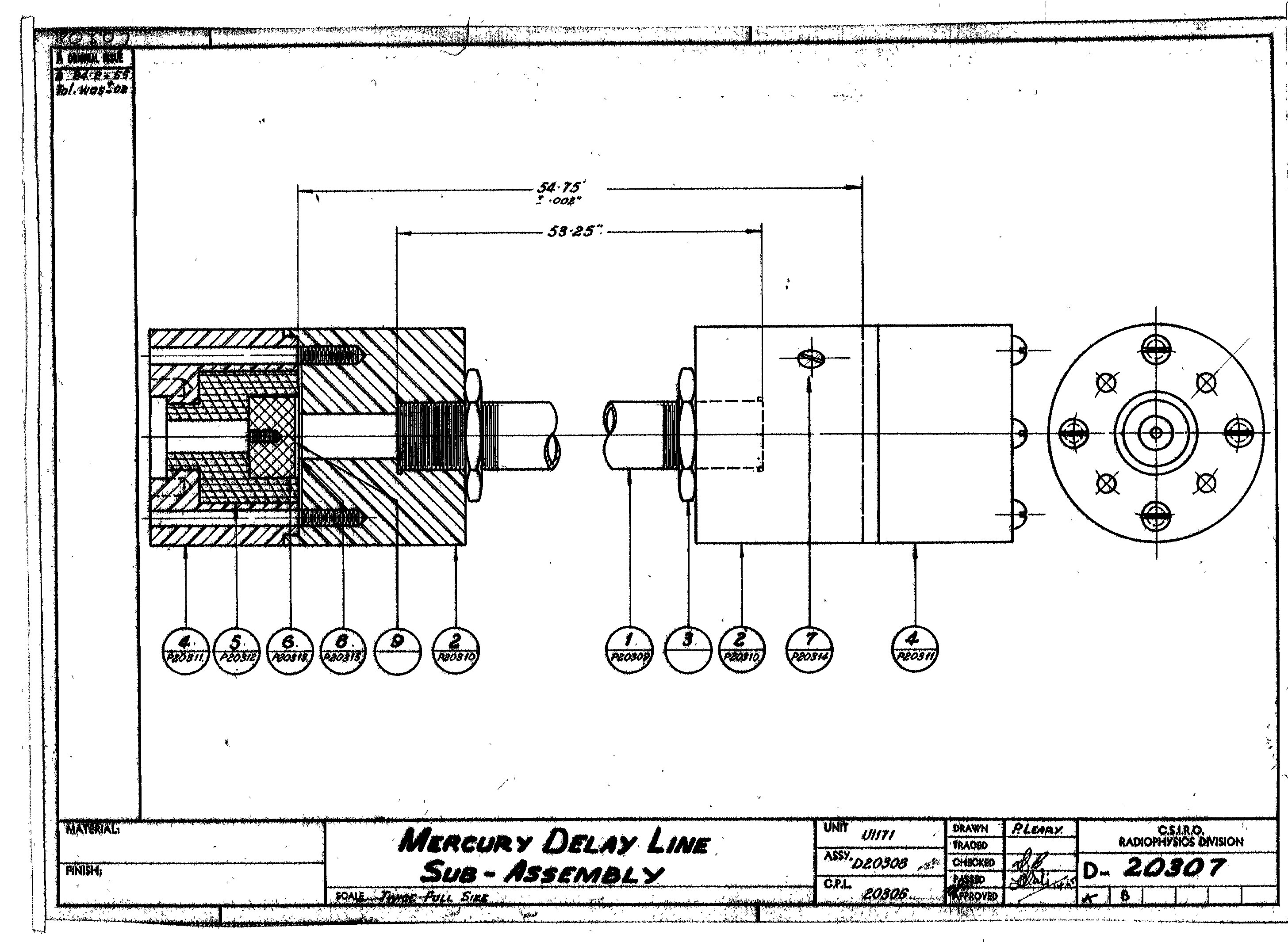 Mechanical Drawing Original Ink on Tracing p. Subsystem: Memory Drawings Comments: Unit U1171 assy. D20308 C.P.L. 20306 Scale: 2 : 1