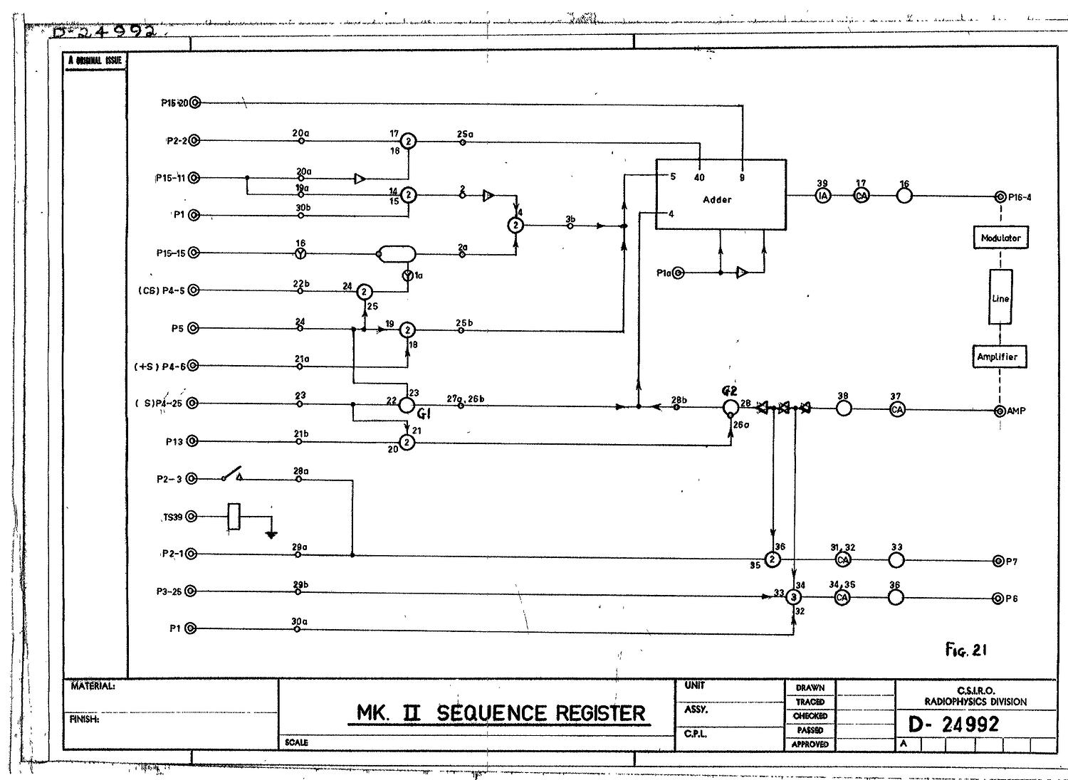 Logical diagram in hard copy relating to the computer CSIRAC.