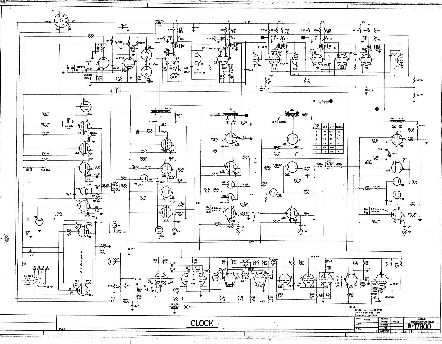 A schematic diagram shows the detailed connections between all the components in a circuit. Such diagrams were used to build circuits and later for testing. For CSIRAC, the most common components were vacuum tubes (valves), capacitors and resistors. Schematic diagrams are also known as circuit diagrams.