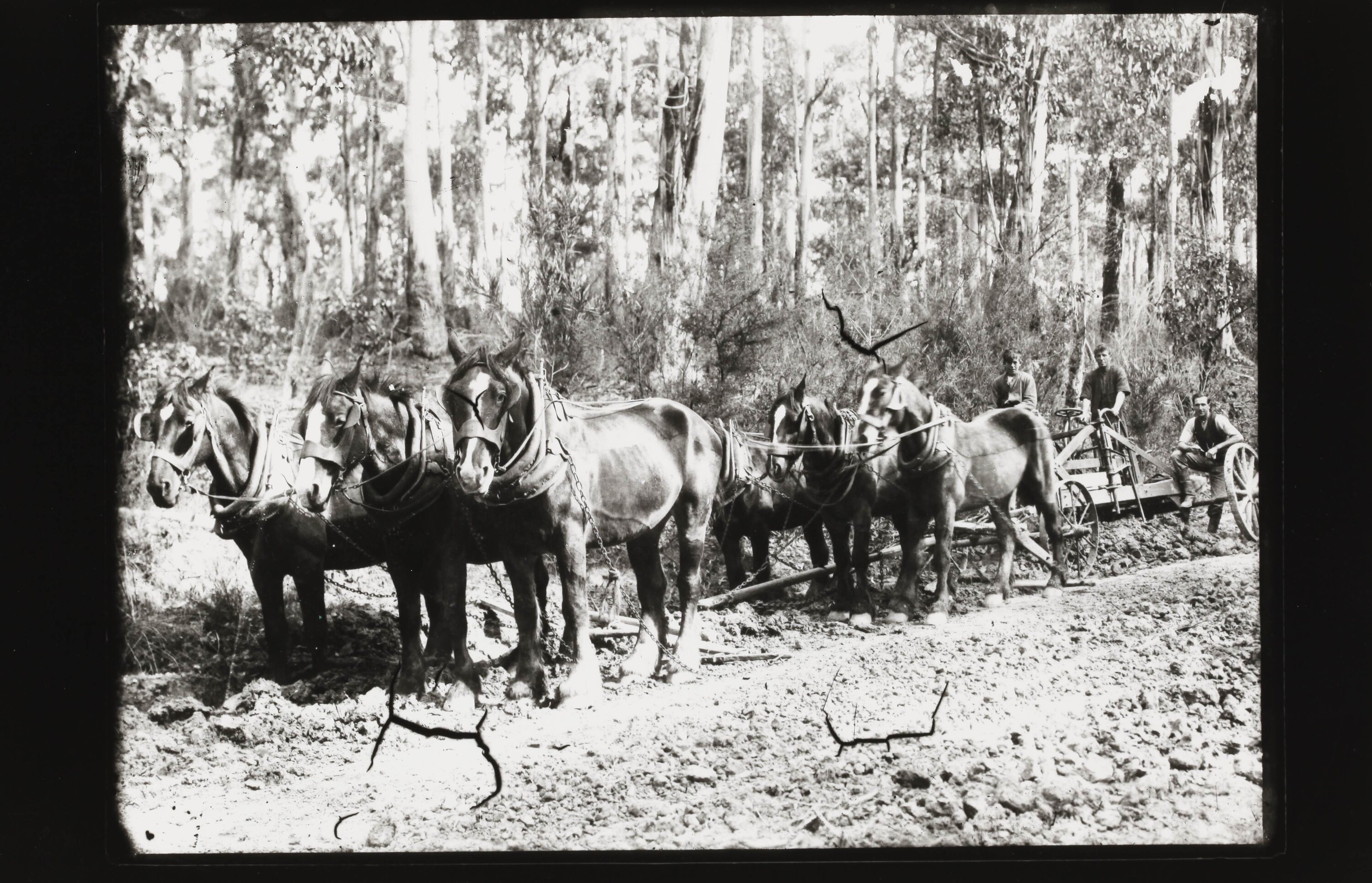 Bushland, Civil Engineering, Horsedrawn Equipment, Horses, People, Road Transport, Roads, Rural Victoria, Working Life