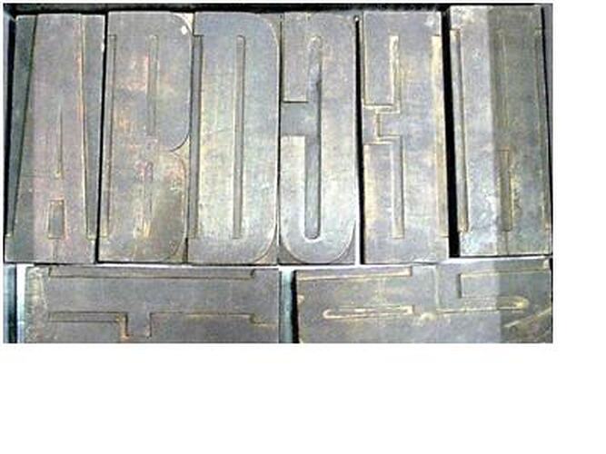Museum container (plastic tray) holding wooden printing type. One of eight trays containing large wooden type. The founts are valuable for size alone. Their date of manufacture is unknown and there is no identification on any piece of wood type.